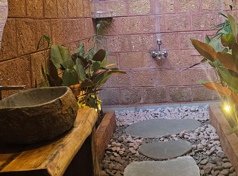 Step onto your spacious balcony overlooking the pond and forest—perfect for quiet mornings, inspired work hours, or sunset reflections. The lush garden bathroom, softly lit and open to nature, turns everyday routines into moments of calm.